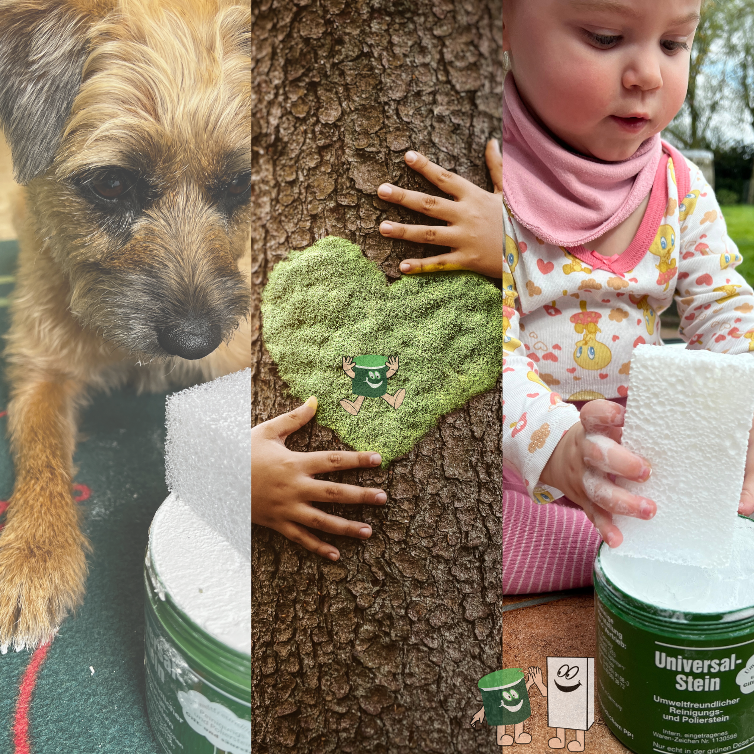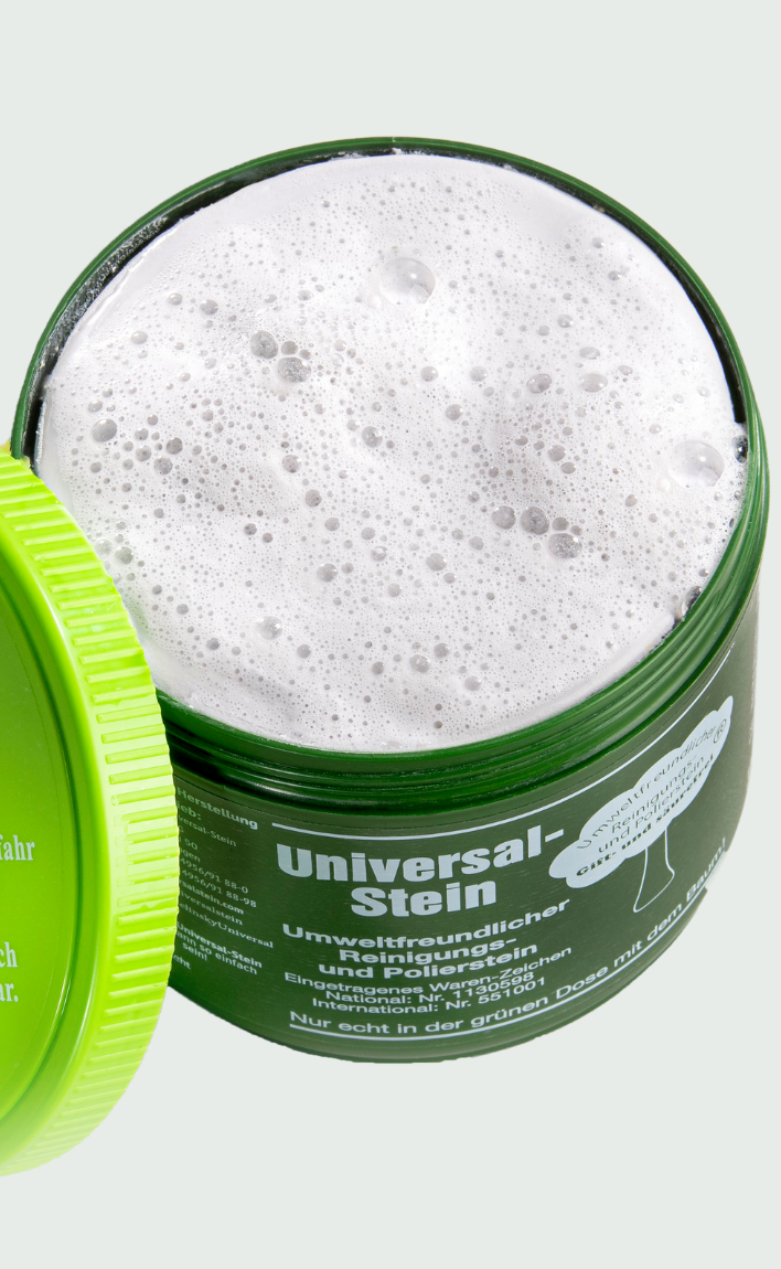 Dank der einzigartigen Rezeptur aus natürlichen Grundstoffen entfernt der Universal-Stein Fett (ohne zu schmieren), Kalk und Schmutz zuverlässig und leicht. 💚