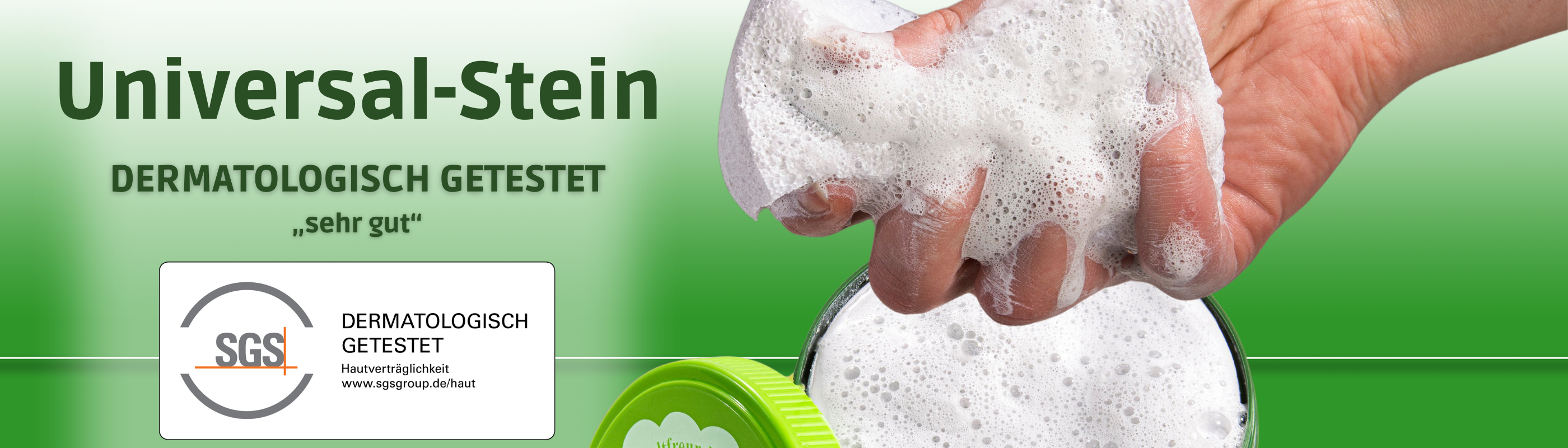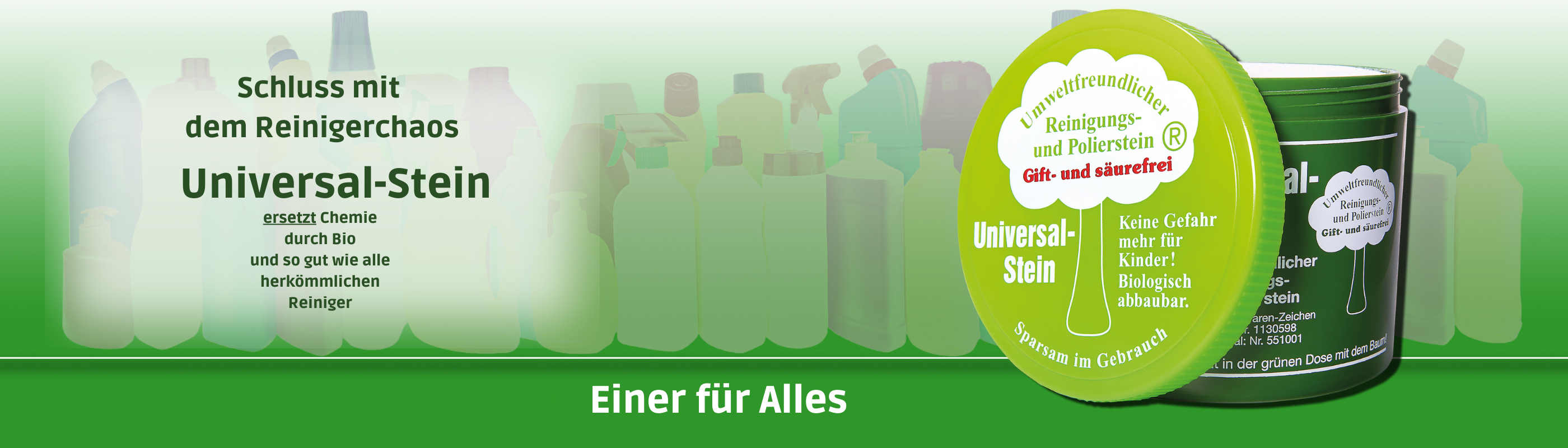 Universal-Stein, Einfach sauber! Unschlagbarer biologischer Universalreiniger, löst selbst hartnäckigste Verschmutzungen vollkommen natürlich und schonend für Mensch, Tier und Natur.